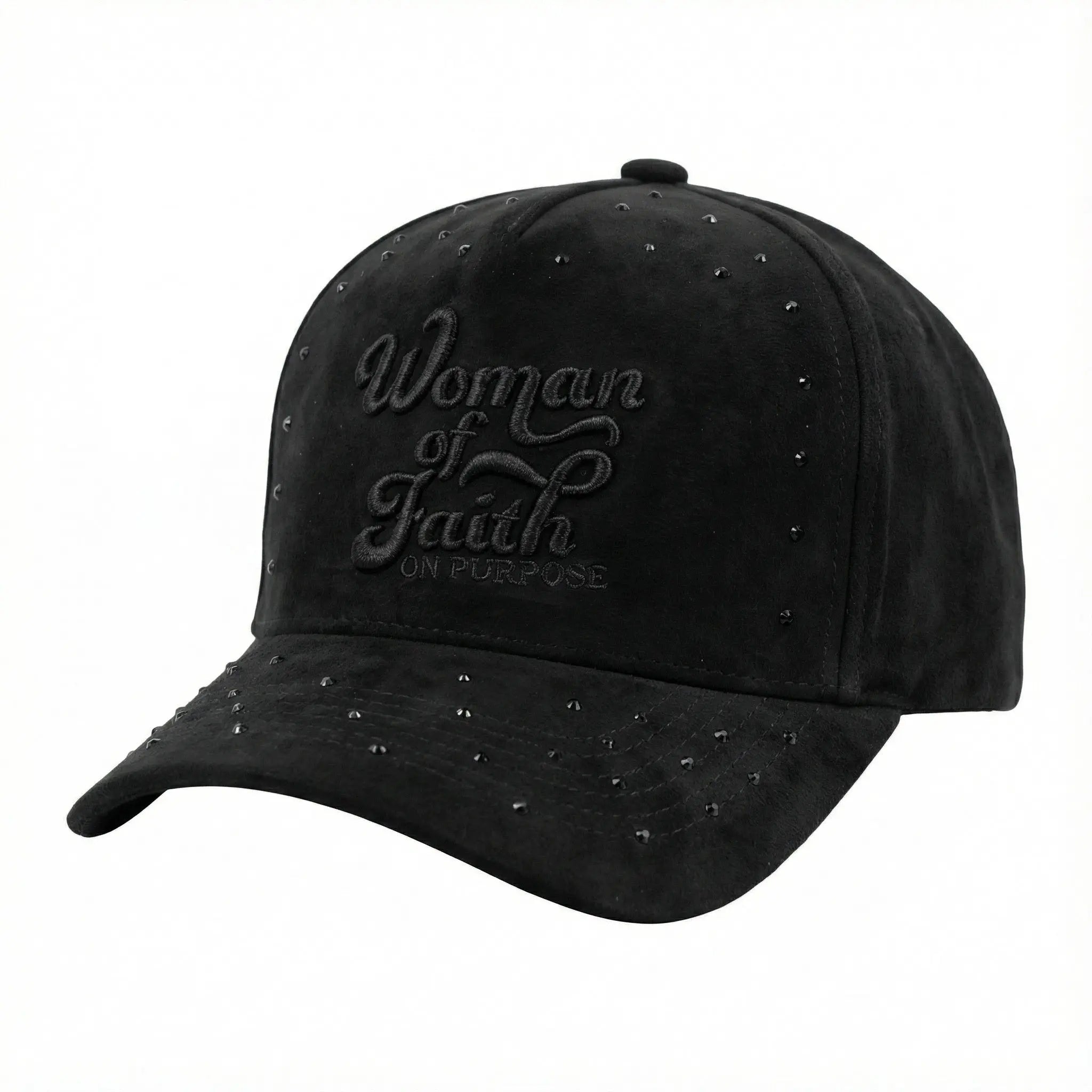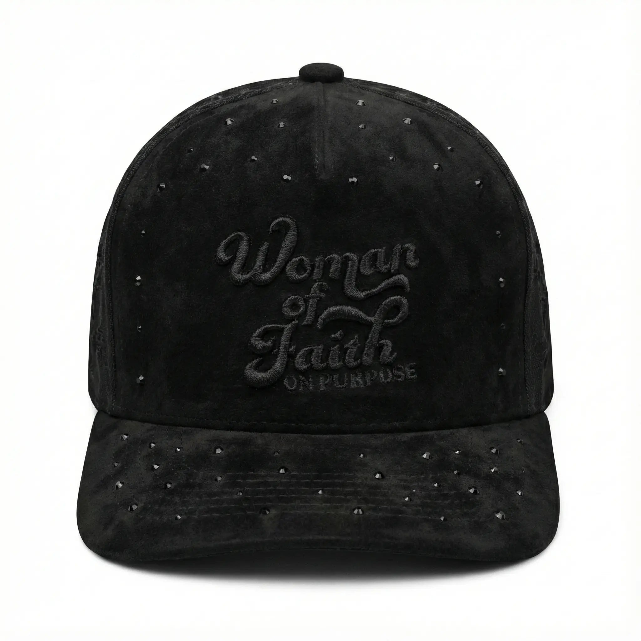 This statement piece was created for the woman who leads her life with intention, courage, and unwavering belief in God’s plan. Crafted with a suede-like exterior, premium tone-on-tone embroidery, intricate side patterns, and hand-set embellishments, this hat blends fashion with faith in a powerful, unforgettable way.